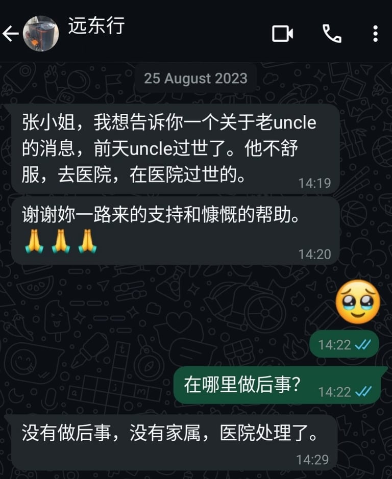 Uncle Choong passed away in August 2023. I am grateful to have been able to support him in the final years of his life, and I hope he is now free from pain and at peace.
